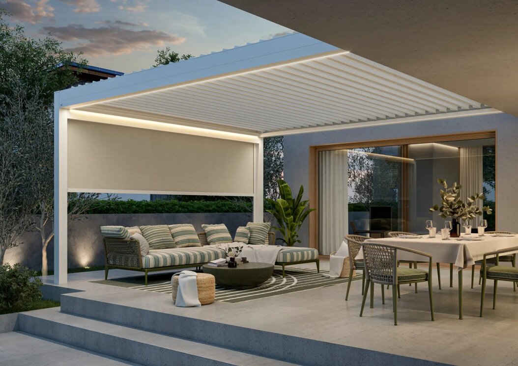 Le strutture bioclimatiche, invece, si distinguono per le lamelle orientabili che regolano luce, ventilazione e temperatura in modo naturale, assicurando il massimo benessere in ogni stagione.